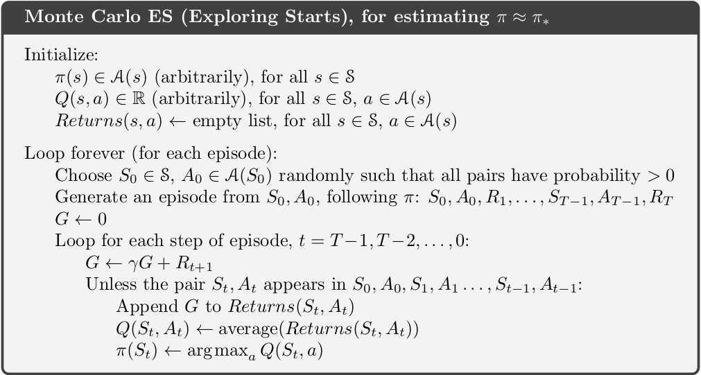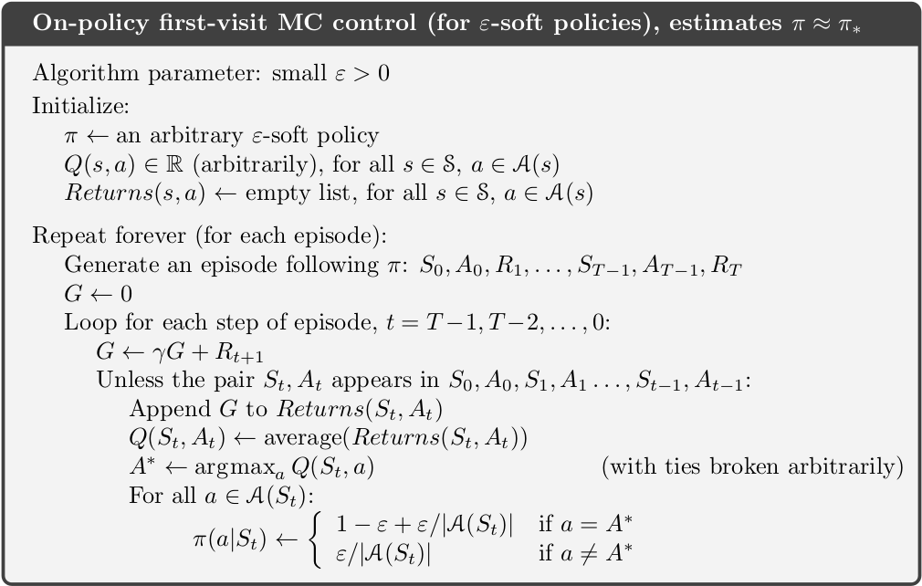The first MC method is presented here below. One of the greatest difficulties in RL is the fundamental dilemma of exploration versus exploitation