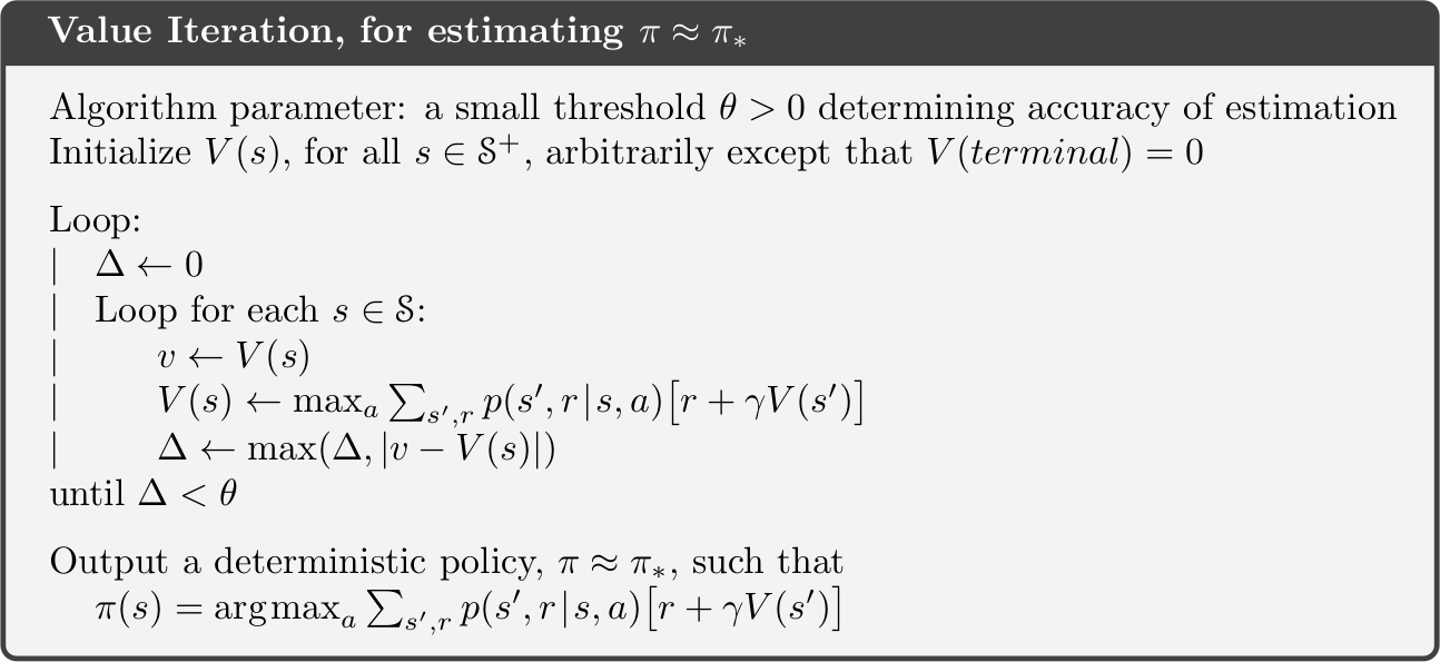 In fact, the policy evaluation can be stopped after just one update of each state. This algorithm is called the value iteration.
