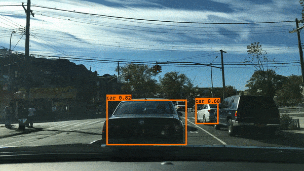 It is assumed that a camera mounted on the car takes pictures of the road every few seconds while driving. The YOLO model takes pictures of road as input and outputs a list of bounding boxes along with the recognized classes, as shown in figure below.