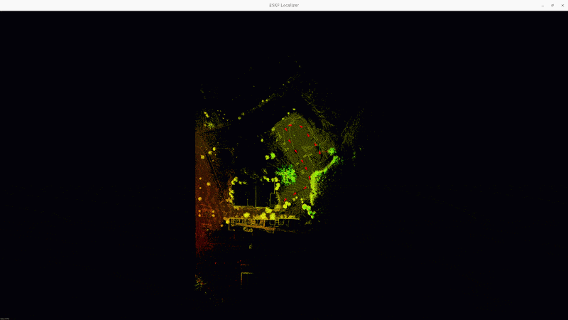 This project implements a real-time lidar localization system based on error state kalman filter. Given the 3D point cloud map, the pose of vehicle is estimated by matching laser scan to the map. Then the states are fused with imu data using ESKF. The initial pose is determined by synchronization of lidar scan with GNSS data which provides physical coordinates, and a grid search for estimating orientation. A map management component is implemented to accelerate scan matching and save memory usage. Running in a seperate thread, the map managment loads active submap and releases inactive submap based on the state of vehicle. The map management thread is also in charge of map visualization.